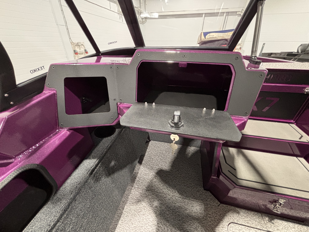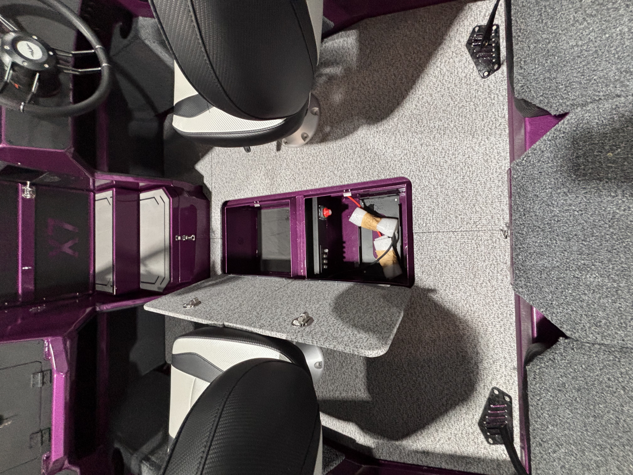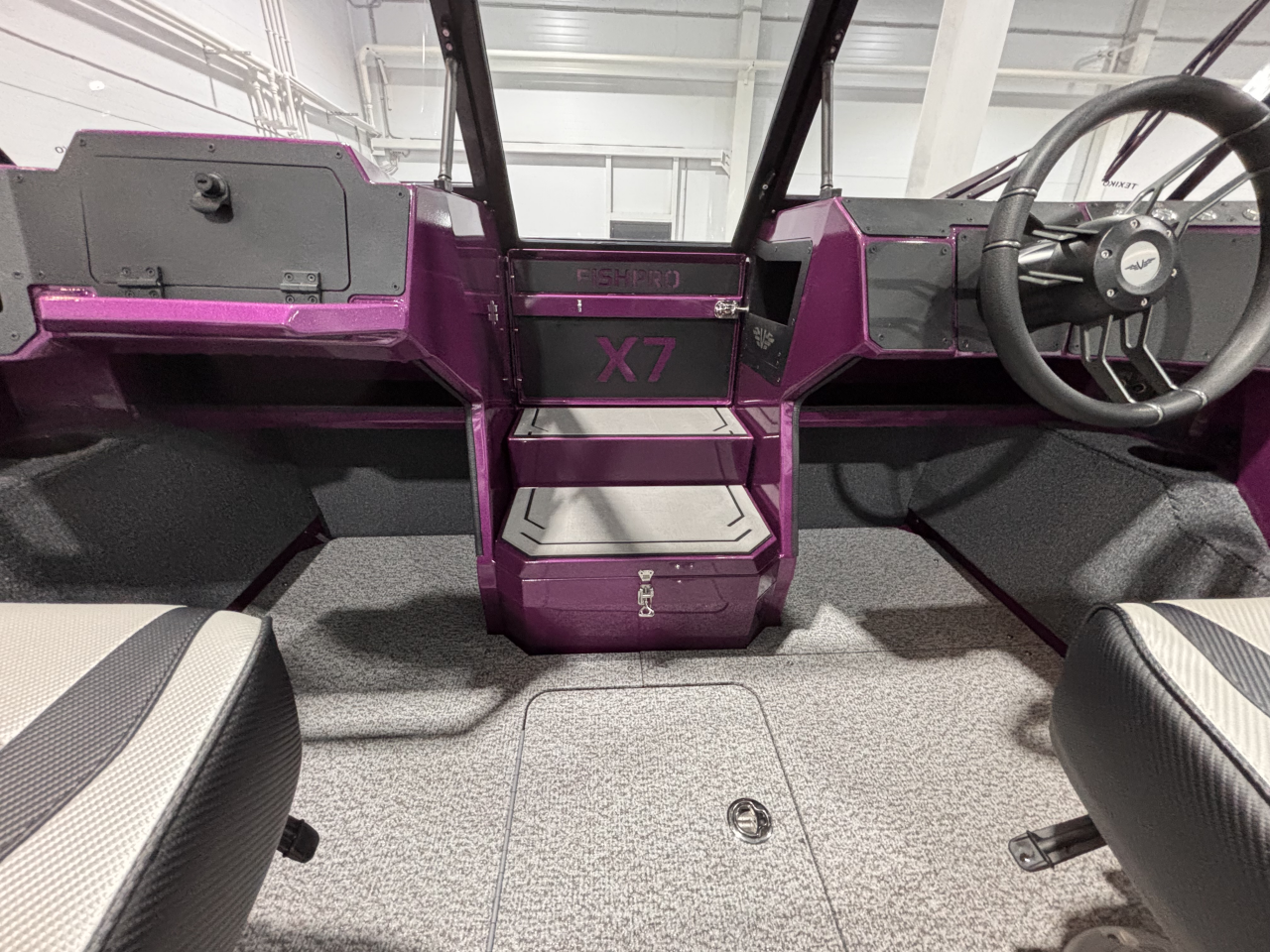 Важным фактором рыболовного спорта является концентрация, поэтому VBoats FishPro X7 оборудована двумя нескользящими fish-платформами, которые позволяют спортсменам устойчиво стоять на ногах при сильной качке и собрать все внимание только на поимке трофея. Для того чтобы быть первым на финише, нужно успеть раньше других занять выгодную локацию, и скоростные показатели лодки дают все условия для уверенного стартового рывка. Также играет роль уровень технического оснащения и здесь компанией VBoats была предусмотрена усиленная носовая площадка под мощный электромотор, который будет удерживать катер на любой волне, просторная консоль с возможностью установки топового комплекса рыбопоискового оборудования и множество рундуков, где спортсмены могут разместить спиннинги, одежду и уловистые приманки к турам.